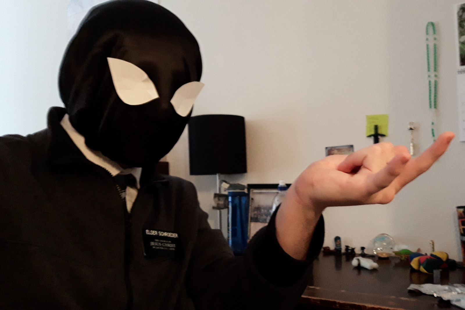 Alright, I got something. So earlier this week I got a bouncy ball. Like, the ones that look like little moons, with the weird crater looking dents in it. Anyway, we went to the church gym to get some exercise, and I figured, “What better time to bust out the bouncy ball?” So we pull up to the church and go into the gym. Elder Anderson is just practicing shooting baskets, and I’m playing good ol’ solo wall ball. But I decide to see if I can throw the bouncy ball at the ground, and have it bounce and hit the ceiling. It bounced pretty crazy high, and nearly hit the ceiling twice. Well, just gotta put some more juice into the next throw, I guess. So I wind up and just throw this ball with the might of Poseiden at the freaking ground. Well. The fates came for me that day. The ball immediately ricocheted and hit me square in the face. I then stumbled to the side, and since I threw my head back so hard, I nearly fell, and my glasses launched off my head. I quickly grabbed my glasses from the ground and looked at basketball boy, who was OBLIVIOUS to what had just transpired. And then I tell the masses on my weekly email, so I still look like a fool. But it was pretty funny.